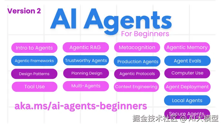 微软的《AI Agents for Beginners》课程代表了高质量AI教育资源的发展方向------专业内容与开放共享的完美结合。通过系统化的课程设计、丰富的实践案例和活跃的社区支持,它为AI Agent初学者提供了一个理想的学习平台。