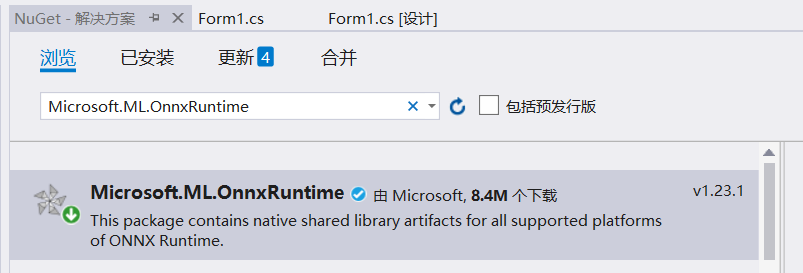在nuget中 添加Microsoft.ML.OnnxRuntime