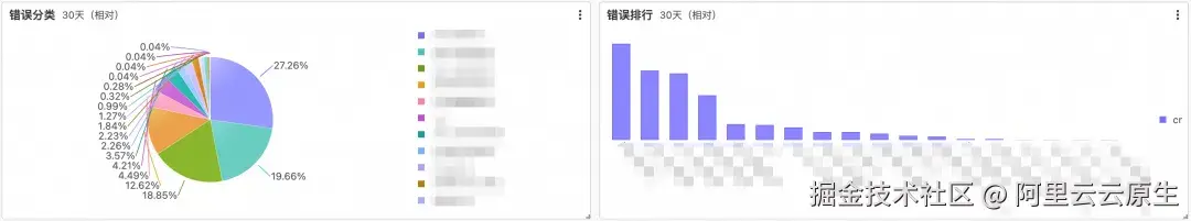 基于 SLS 的 SQL 分析和可视化能力,我们还可以为业务轻松构建黄金指标,定制运营大盘,深入洞察并分析交互留存转化、每日请求趋势变化、错误分布情况、SQL 质量监控(可执行率和有效数据率)、用户满意度监控等。