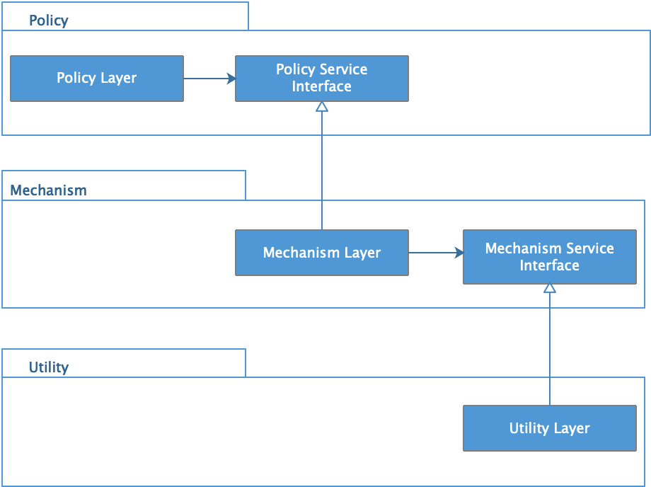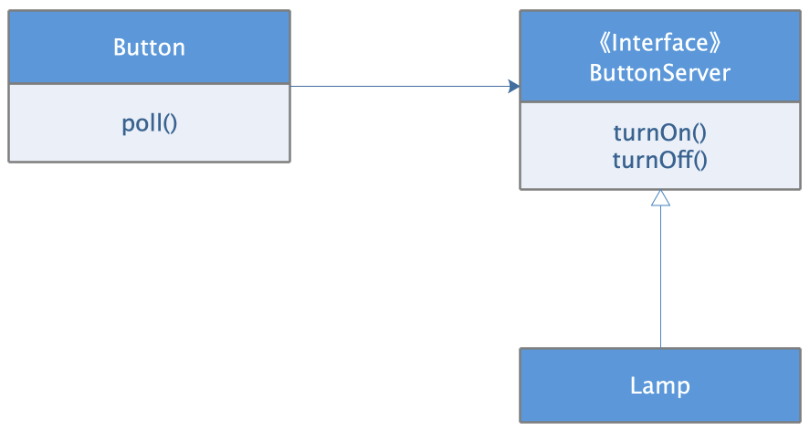 在具体实践中,这个抽象接口的组件设计,也应该遵循前面专栏讲到的[依赖倒置原则]。也就是说,抽象的接口组件不应该由低层具体实现组件定义,而应该由高层使用组件定义。高层使用组件依赖接口组件进行编程,而低层实现组件实现接口组件。