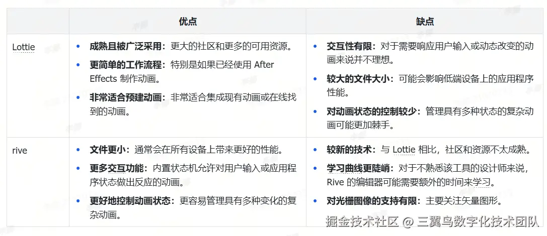 动效类型 | 优点 | 缺点 | 动效文件大小 | 是否支持网络加载 | 使用难度 | 是否支持控制器 |