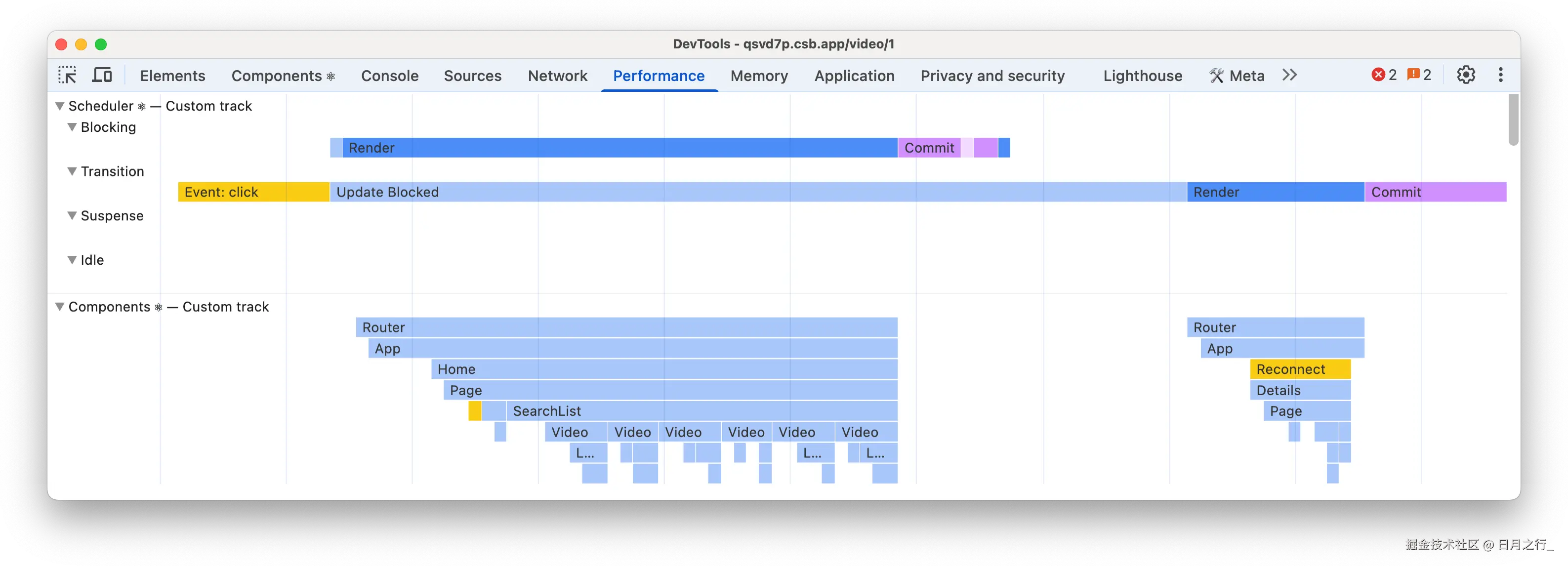 • 组件渲染阶段的详细耗时分布,精确到每个组件的挂载/更新周期