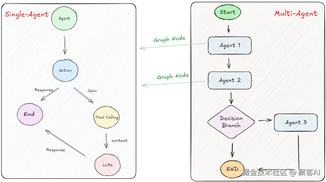 在大模型应用开发的实践中,你们可能会遇到这样一个问题,无论单个智能体(Agent)的能力多么强大,其"独行侠"式的作业模式在应对复杂任务时往往显得力不从心。这好比让一位程序员独立负责从需求分析、编码、测试到部署上线的全流程,即便其能力卓越,也极易因任务过载而效率低下。今天我将从单智能体的局限性出发,深入探讨如何利用LangGraph框架,从零开始构建一个具备自主协作能力的多智能体系统。希望能给大家一些参考。