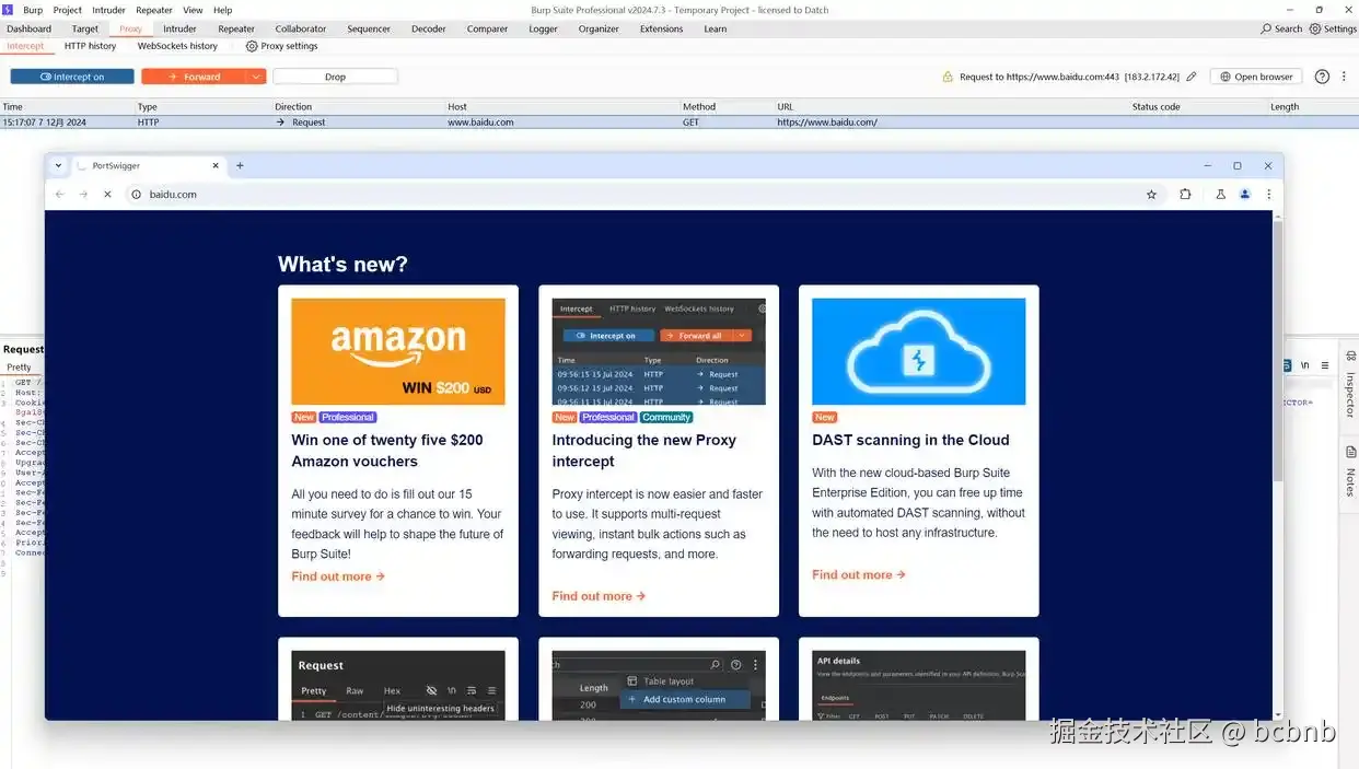 通过BurpSuite内置浏览器进行抓包不需要额外进行配置