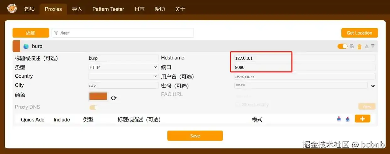 安装好插件,配置好浏览器代理,Host设置为127.0.0.1,端口设置为8080