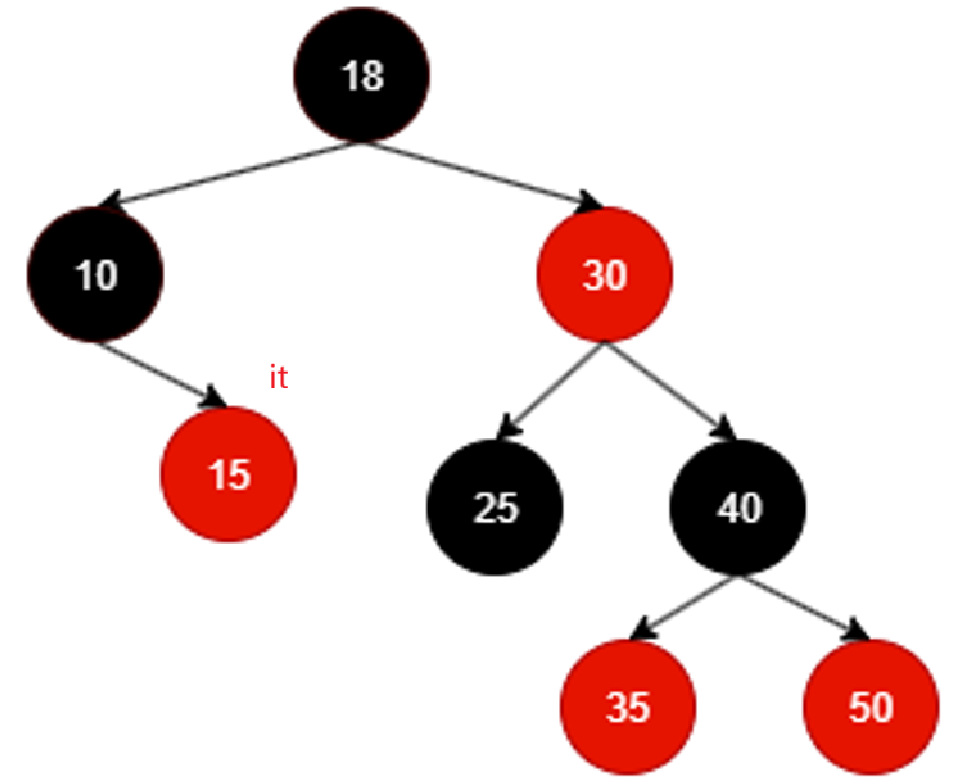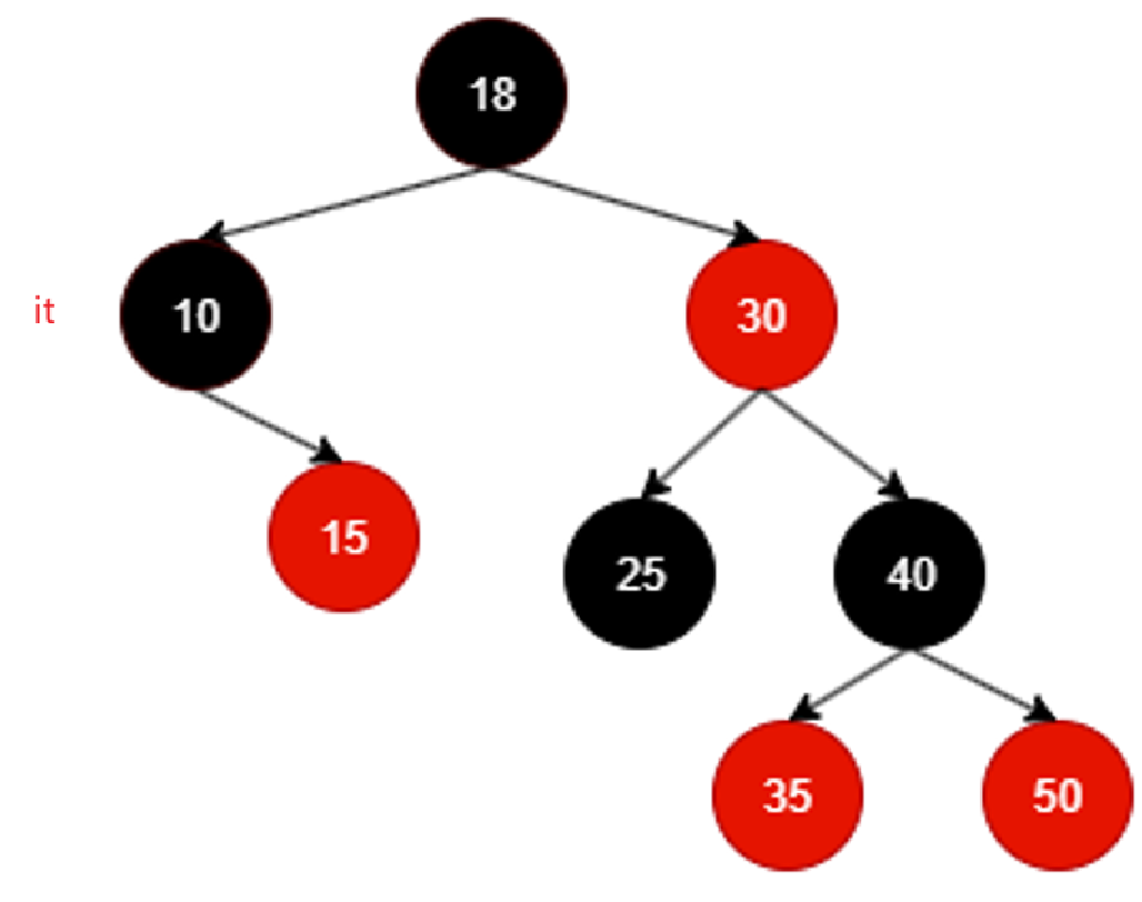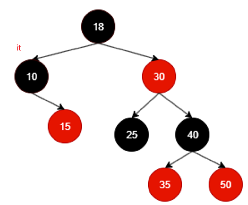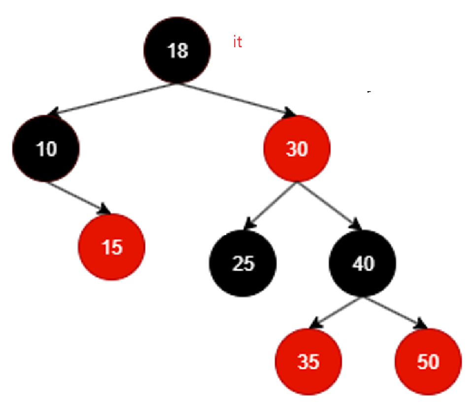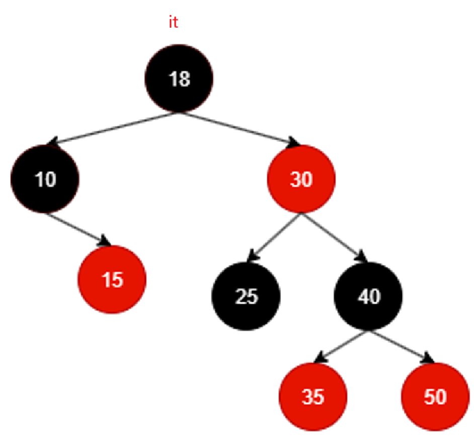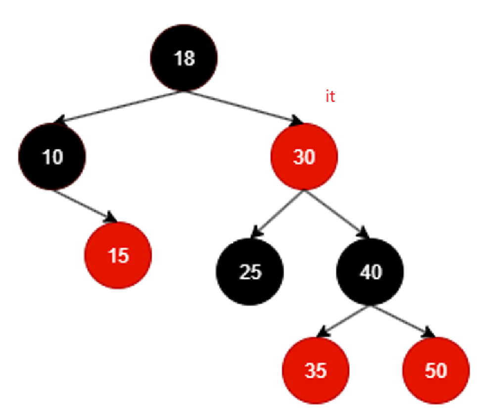 it回溯到10,10是18的左子树,根据左根右,以18为根结点的树左根右的左遍历完了,那就++该遍历根18: