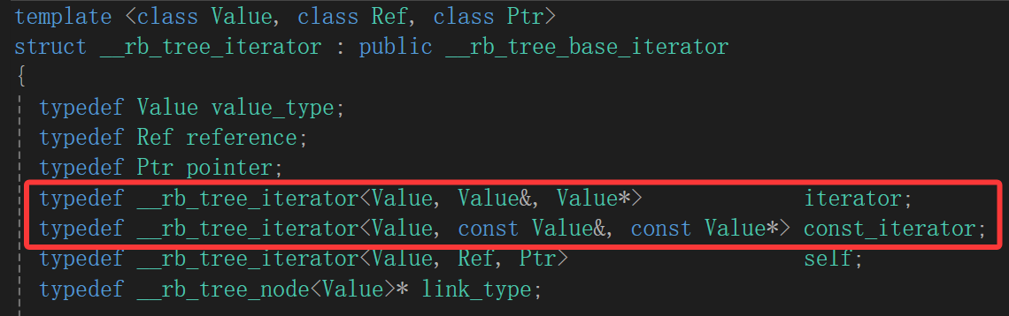 所以红黑树结点存储的值的类型就是第二个模板参数value了,因为它直接把结点搞成node<value>了,当然,如果不放心的话还有个: