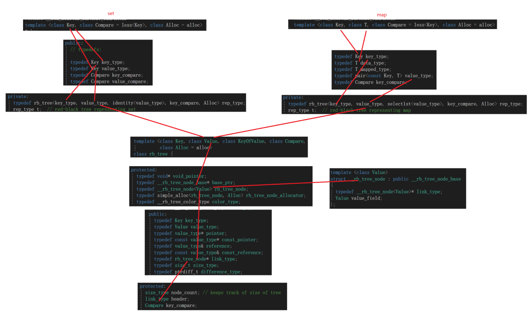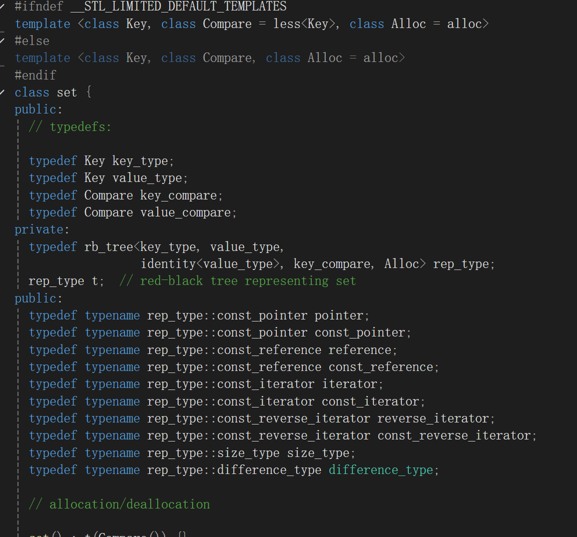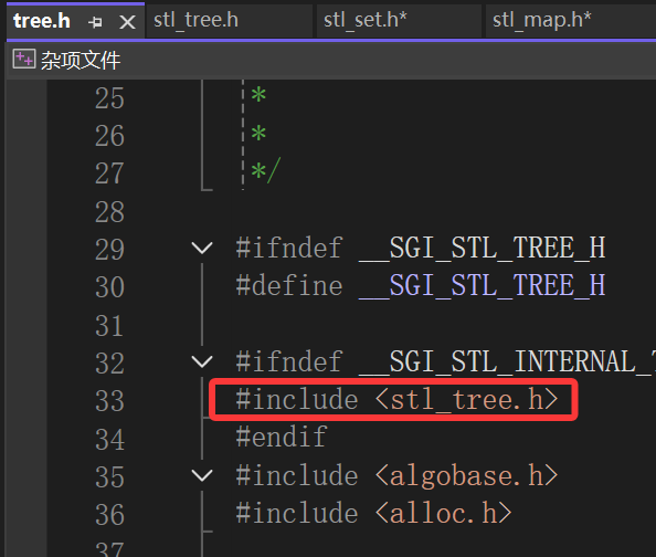 <set.h>和<map.h>就这么点内容,其实重点还是里面包的头文件,库里面代码经常就是包来包去,可能考虑到解耦和使用的原因吧。