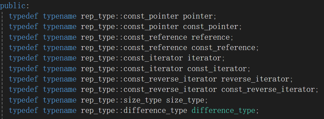 然后就是找成员变量昂,这也真是个技术活,考眼力的,因为它里面经常搞typedef,写一大堆,我是盯着访问限定符找到的: