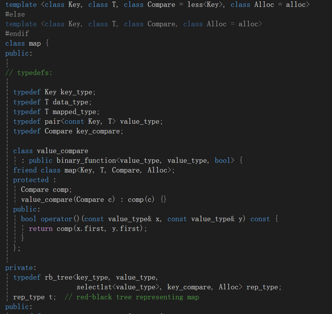 虽然二三十年前,九几年的源码了,但是吧,还是有参考价值的,比如看一个类看不懂咋办,先看模板参数,看名字去连蒙带猜,猜了后就看成员变量,再看不懂就找找函数,当然别去找逻辑运算符、赋值重载、swap啥的,这玩意看了也是个没营养,这个类干啥也还是看不懂,有insert这种就奔着insert去吧,总归能有点头绪。