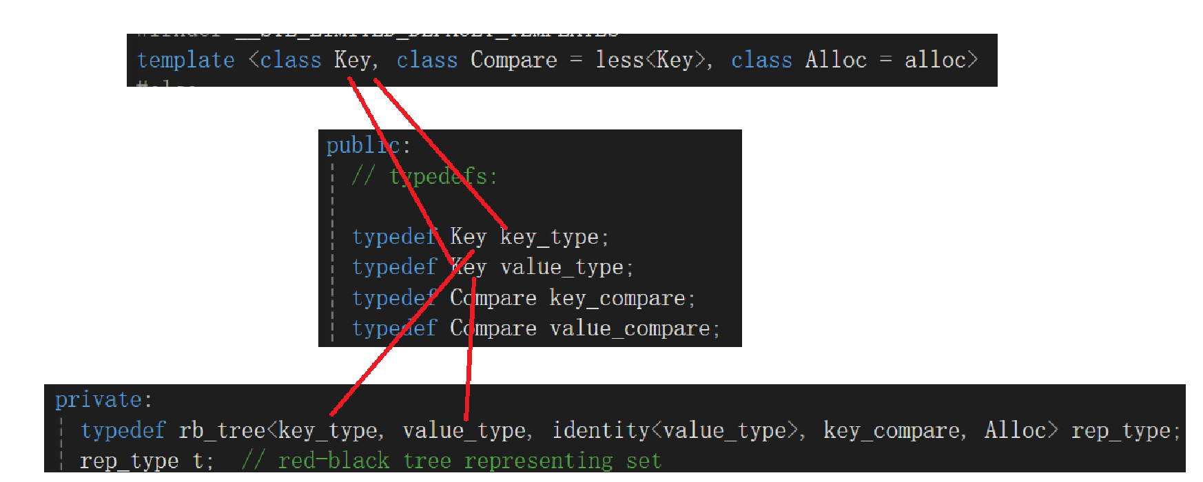 set类的模板是Key、仿函数、内存池,意料之中昂。