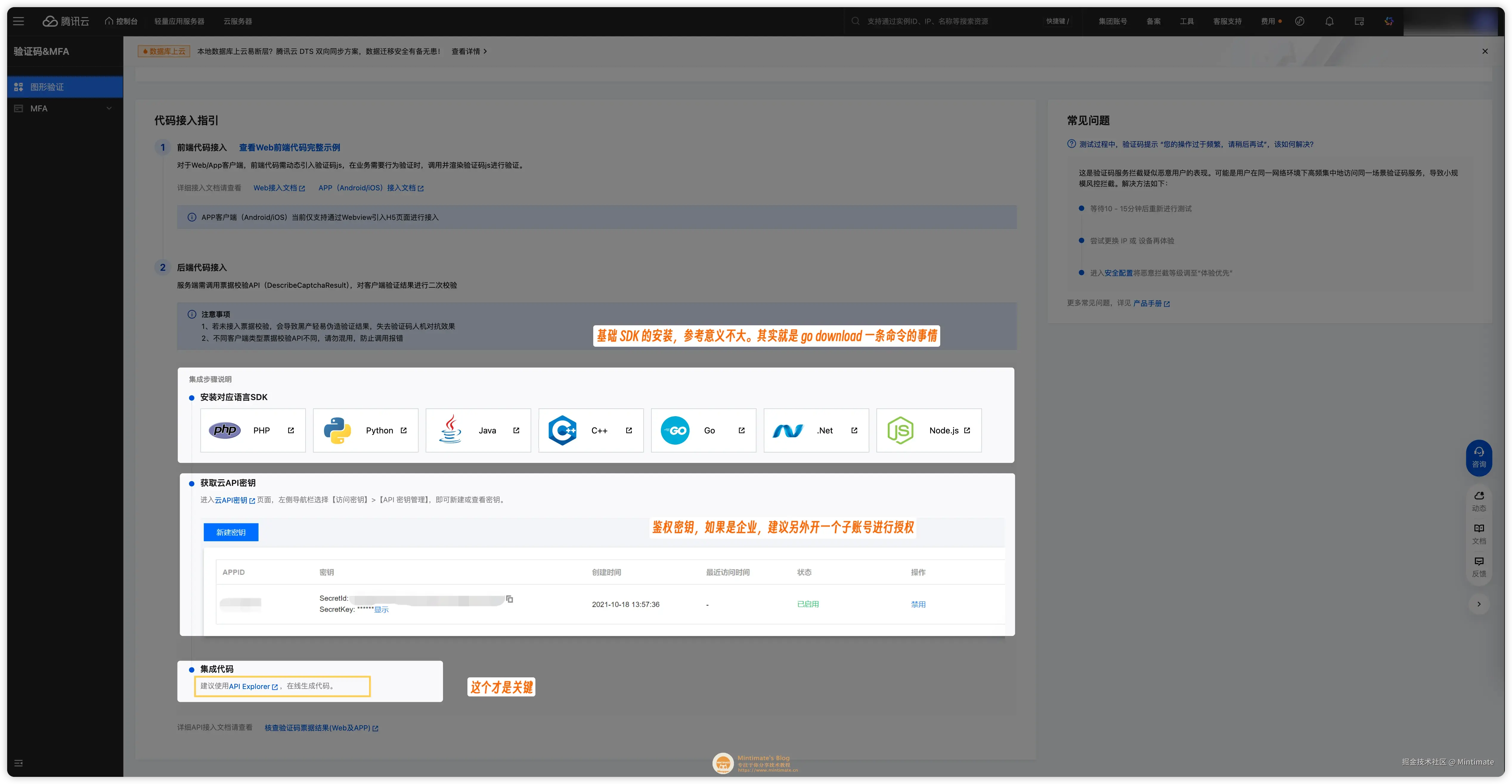 我们这次就以天御验证码为例,介绍如何接入人机验证和恶意请求拦截。腾讯云天御验证码的官网地址是:
