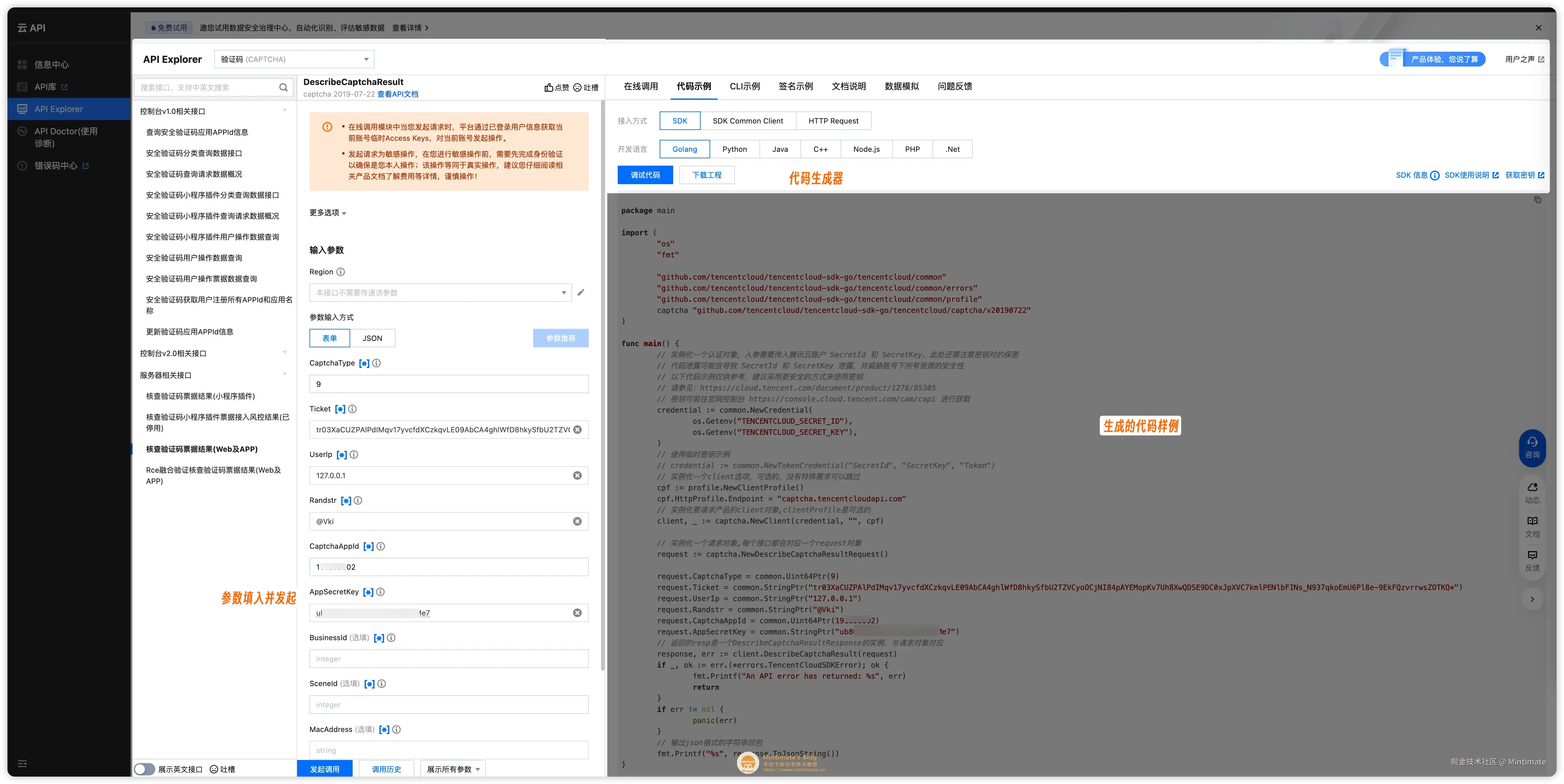 - CaptchaRandstr: 随机字符串 G->>G: 9. 解析请求参数 G->>T: 10. 调用DescribeCaptchaResult API Note right of G: 验证参数: