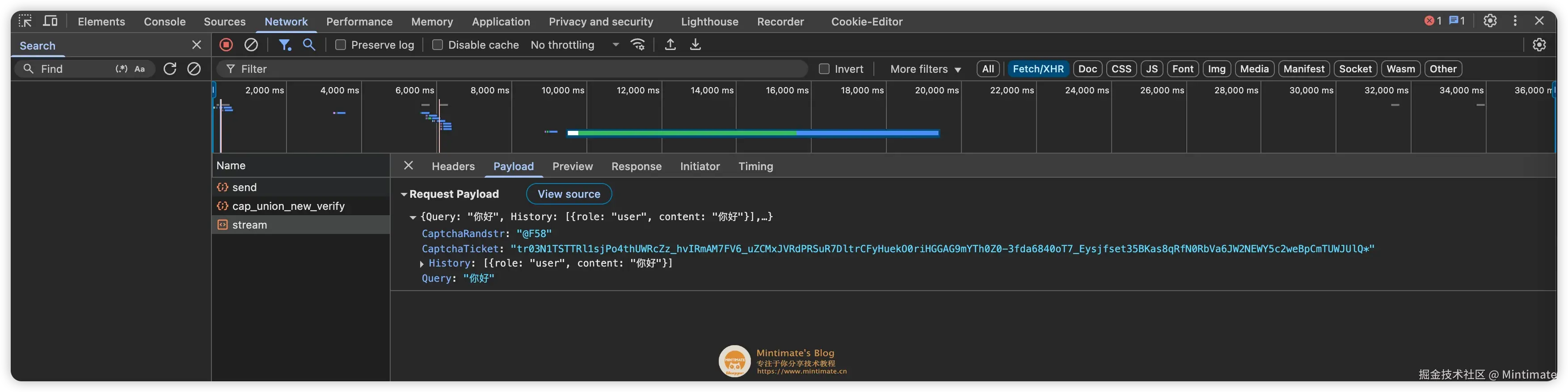 可以在 薄荷文档 上的 AI 功能进行提问,会自动触发验证码,如下图所示: