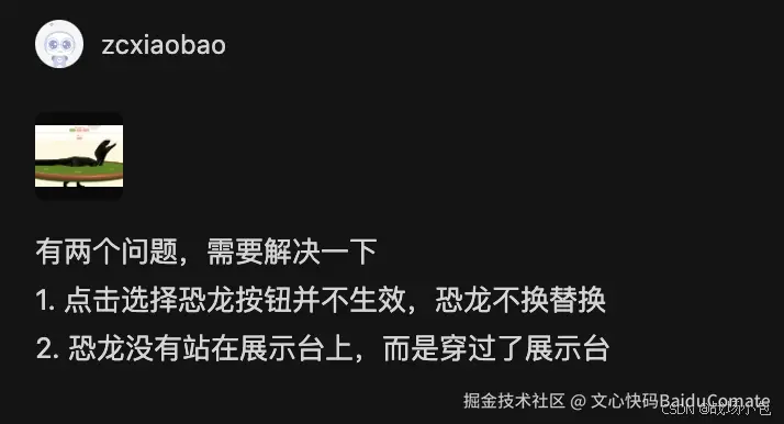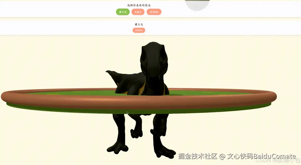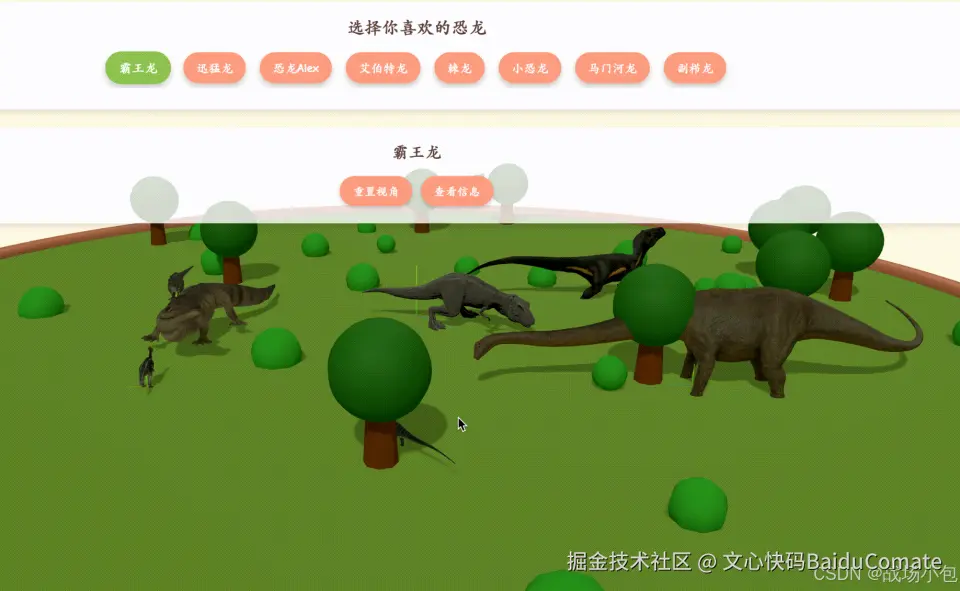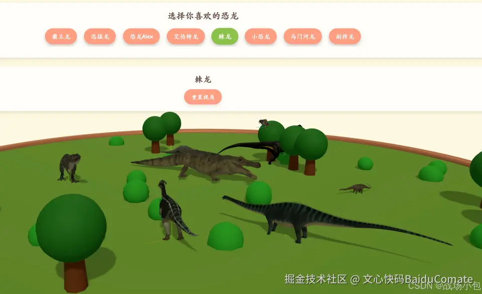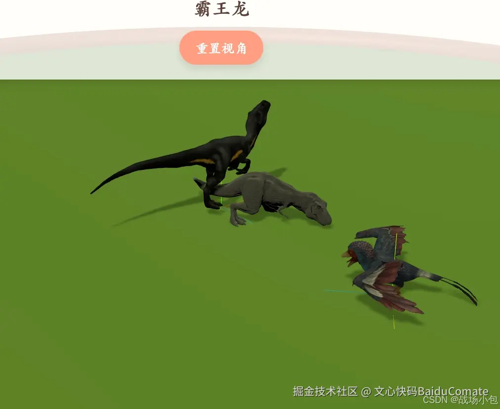 根据我的需求,文心快码3.5S调整了迅猛龙的位置,才发现中间躲着一个小龙(霸王龙)。突然意识到,可能是模型大小存在差异,我倒,但问题是此时我还是认错了龙。。。。