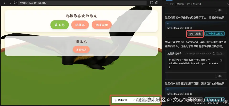 还好,9月的Wavesummit 开发者大会百度文心快码发布3.5S(Super Synergistic AgentS)版本,打造"多智能体自协同引擎" ,让智能体之间真正实现自主协作、共同完成任务 。AI coding 这一年来,大家肯定都不陌生了,Cursor、Trae、Comate各自登台亮相,每一款产品都体验过,有些包都在深度使用,已经融入了包的日常开发中,成为密不可分的一部分。那这次不如咱们就试试,使用文心快码 3.5S 做一个恐龙乐园,让弟弟看个够。