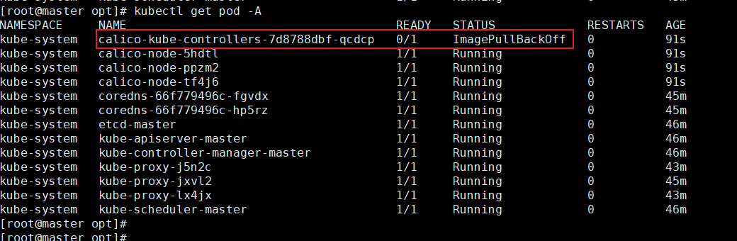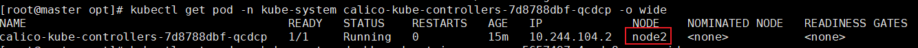 [root@master opt]# kubectl get pod -n kube-system calico-kube-controllers-7d8788dbf-qcdcp -o wide