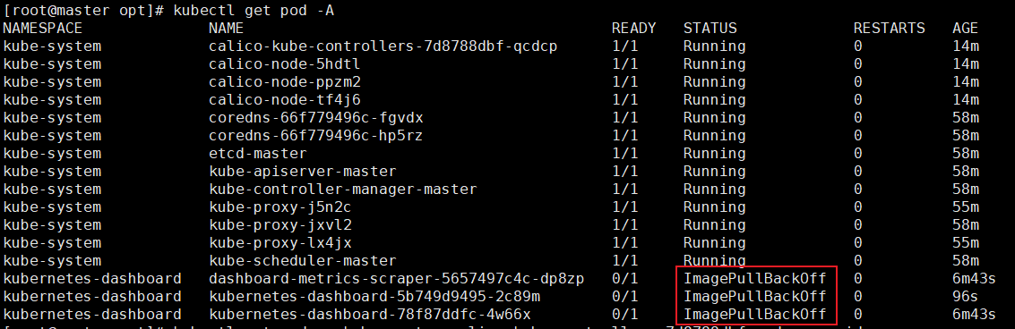 [root@master opt]# kubectl get pod,svc -n kubernetes-dashboard