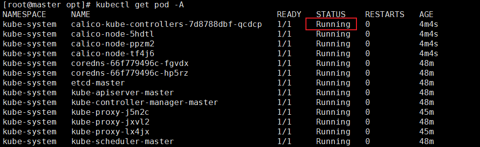 [root@master opt]# nerdctl -n k8s.io load -i calico-node-v3.24.5.tar