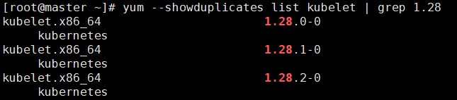 [root@master ~]# yum --showduplicates list kubelet | grep 1.28