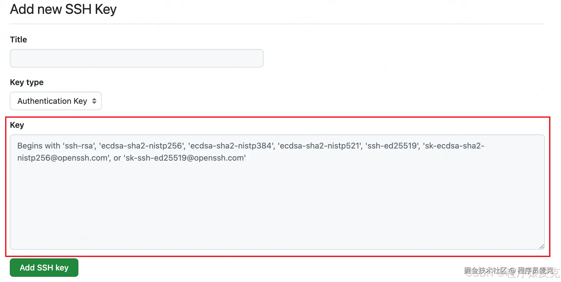 1.3.3 讲公钥粘贴进来,提交即可。