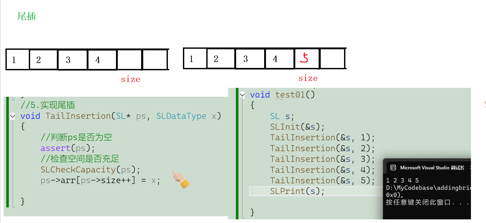 5.尾插(向顺序表中尾插1,2,3,4,5)