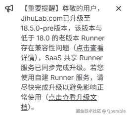 经过这一番折腾后,流水线终于恢复了,然后我在今天在写文章的时候注意到gitlab流水线页面的右下角增加了一小块提示: