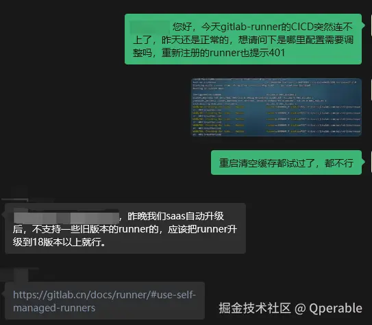 那么这个问题的解决方案其实很简单,原因是gitlab官方更新了gitlab版本,旧版本的gitlab-runner无法连接上新版本的平台,导致连接失败,所以只需要更新gitlab-runner版本就行了如果你是docker部署,参考该文档,如果你是手动部署,参考该文档。