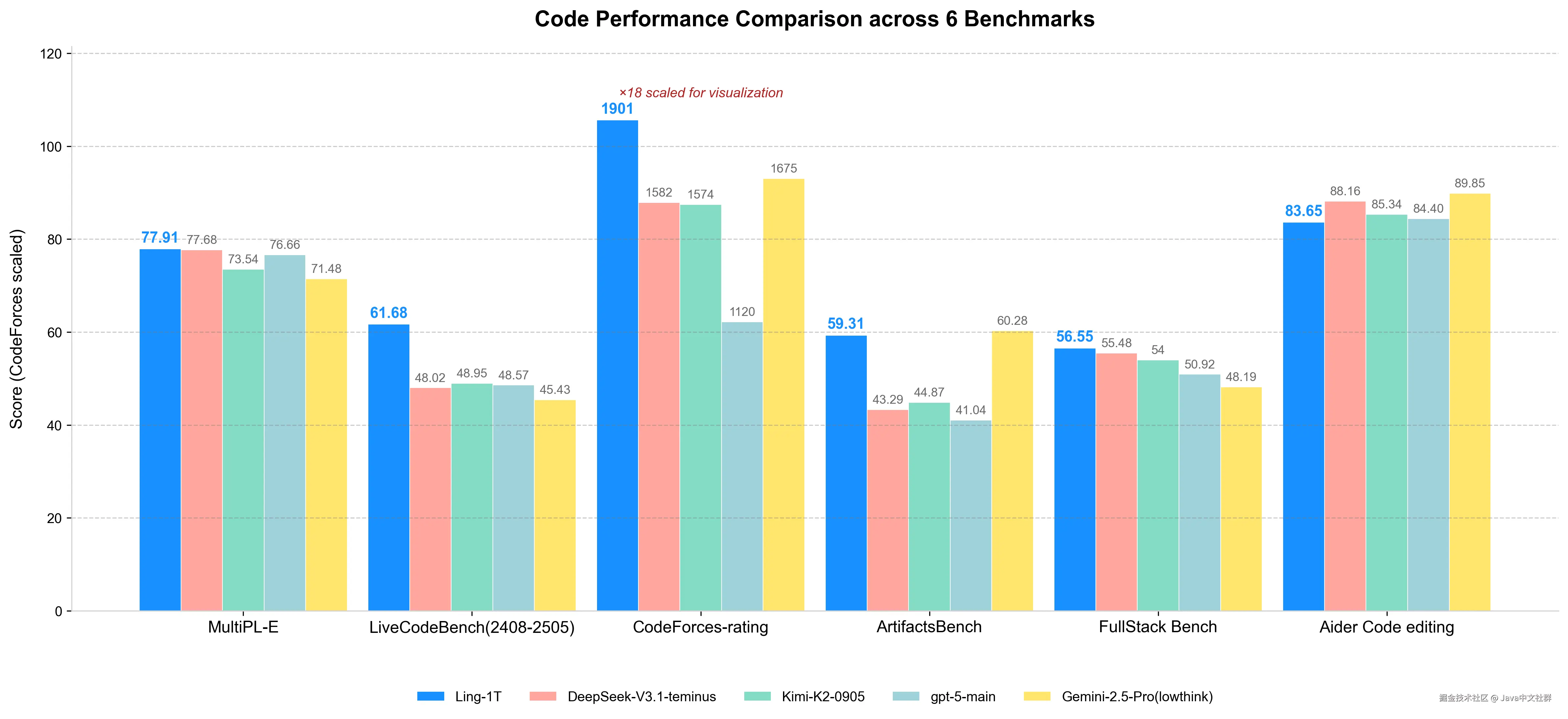 以下是 Ling 1T 在数学和代码方面的测试表现: