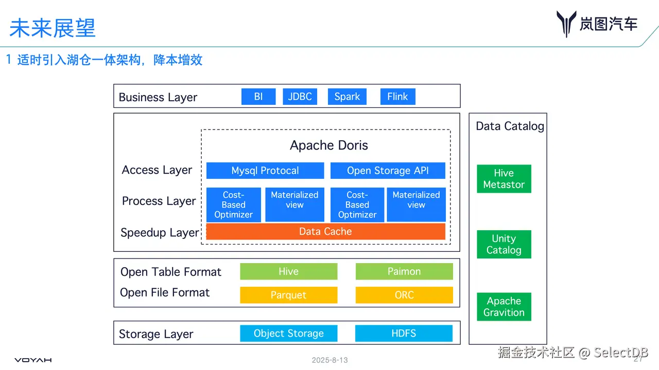 岚图汽车通过采用 Apache Doris,对实时数据仓库基础设施完成了现代化改造和转型。通过智能数据分层不仅降低了 60% 的储存成本,还提升了应对多样化和高要求工作负载的查询性能,展现了 Apache Doris 在互联汽车数据平台所特有的大规模、高并发和实时环境中所具备的能力和优势。岚图汽车的未来规划与行业更广泛的趋势相符,向更集成的湖仓一体数据平台、更灵活可扩展的存算分离架构发展。