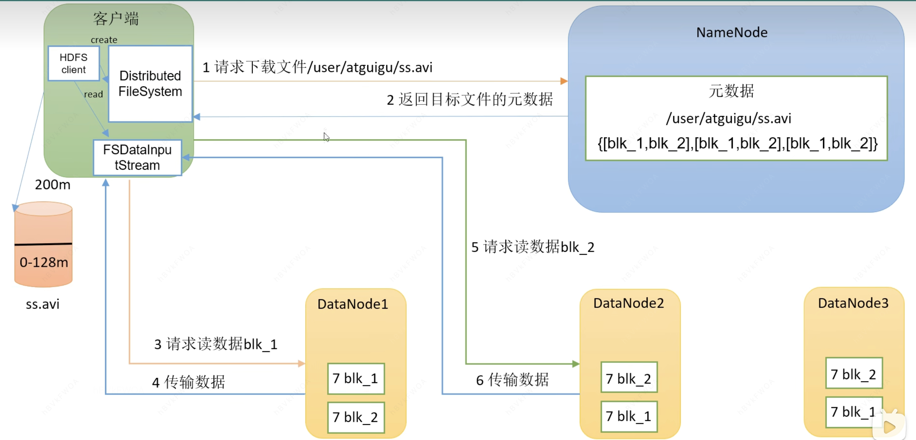 2.与NameNode打交道,获取文件存储的目录位置信息。