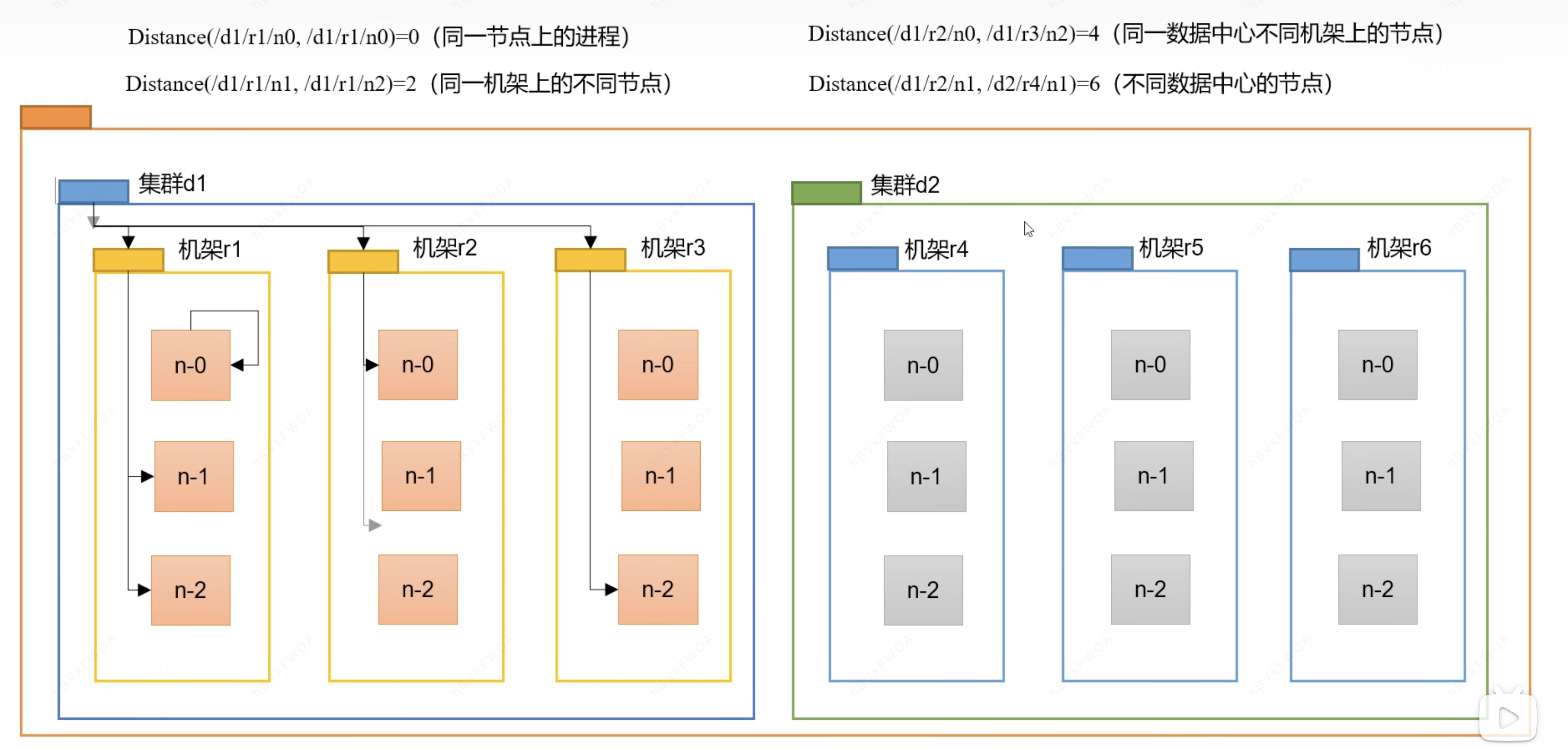 注意:在读数据的过程中肯定是选择三个副本中和客户端最近的那个节点的DataNode,但是不可能一直访问同一个节点,也会考虑到节点的负载均衡,所以可能也会去读别的节点。