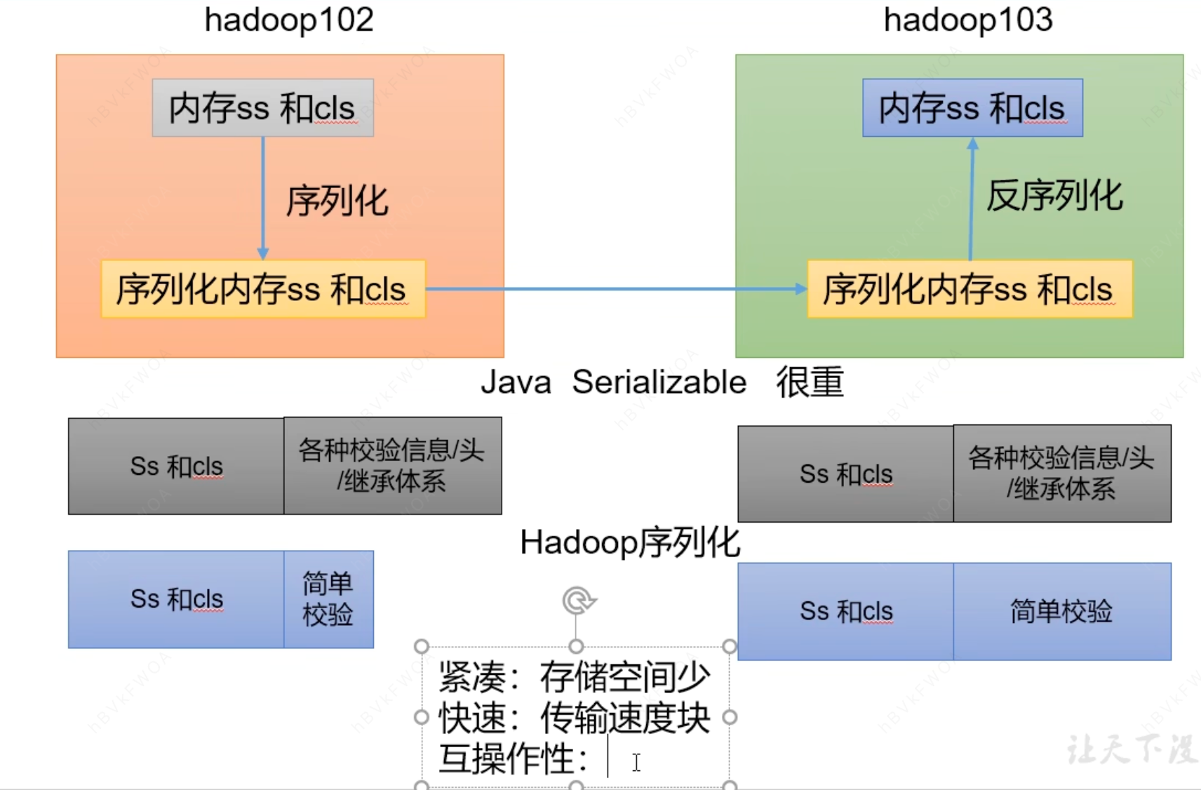 Hadoop序列化相比较Java序列化来说,更轻,更快,更方便。