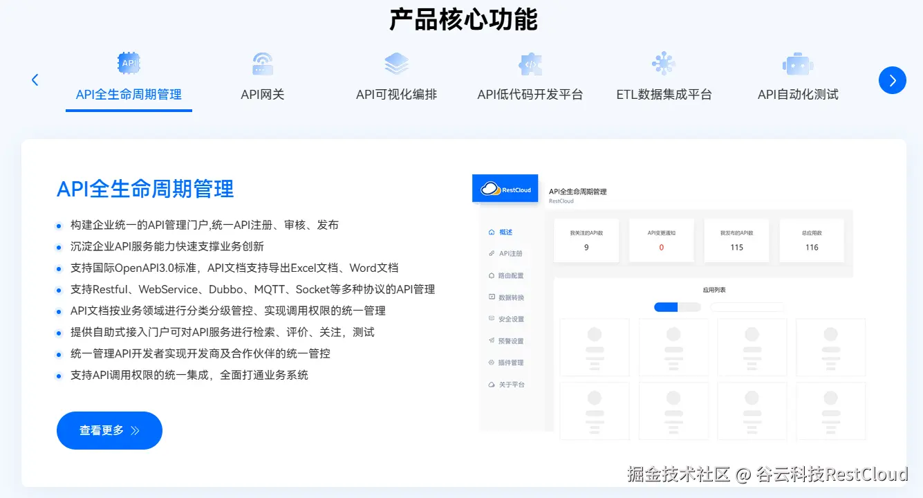 开发者门户(Developer Portal):为内部或外部开发者提供一站式服务,包括API文档、交互式控制台、SDK下载、应用注册和API密钥管理。这是培育开发者生态的关键。