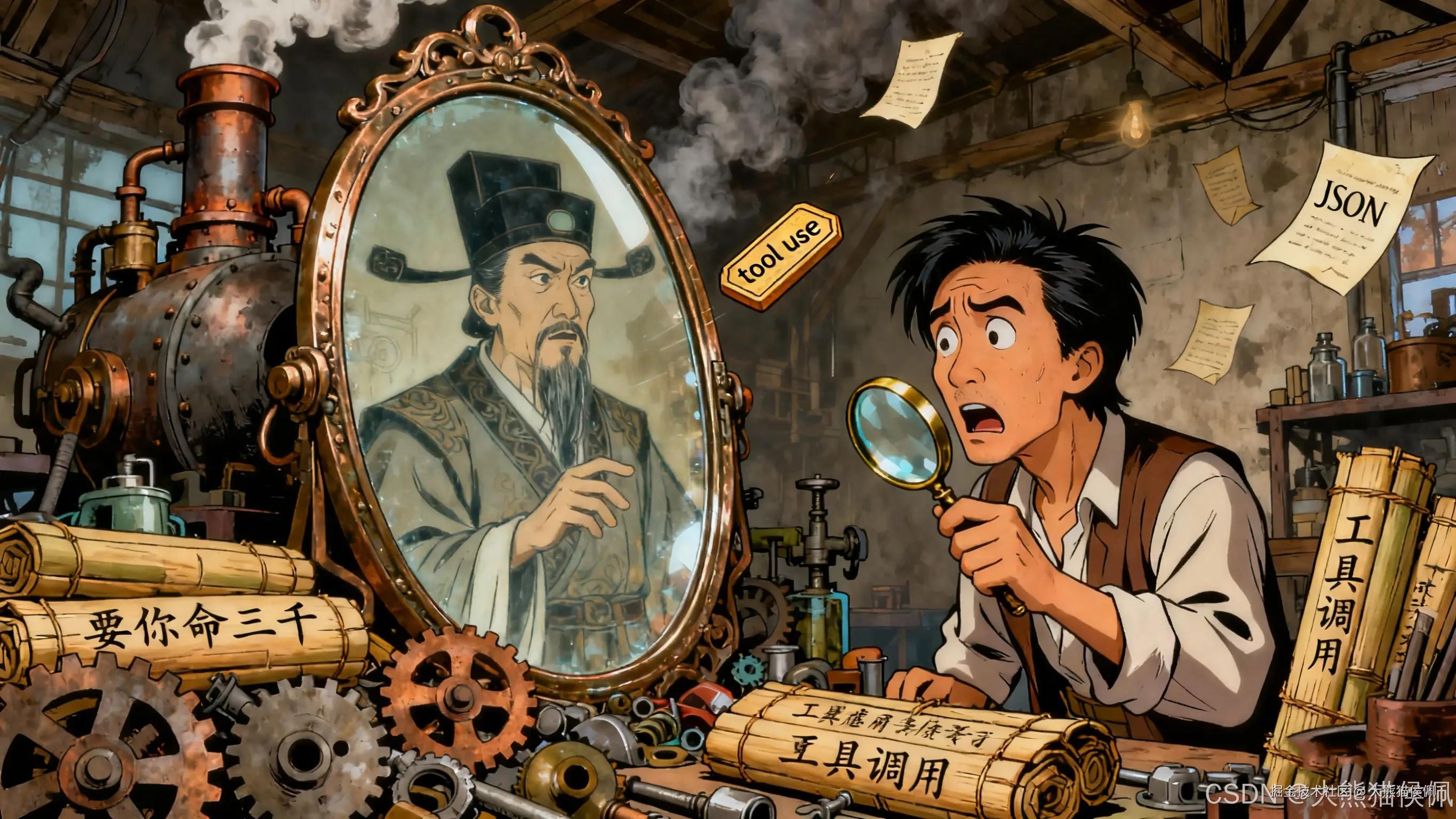 Claude 收到消息,一看是查发明状态,立马回复:"稍等,我这就调用工具查查您的天外飞仙破解器状态。" 同时偷偷发了个工具调用指令(藏在 JSON 里,用户看不见):