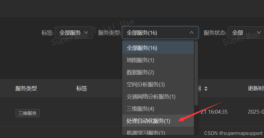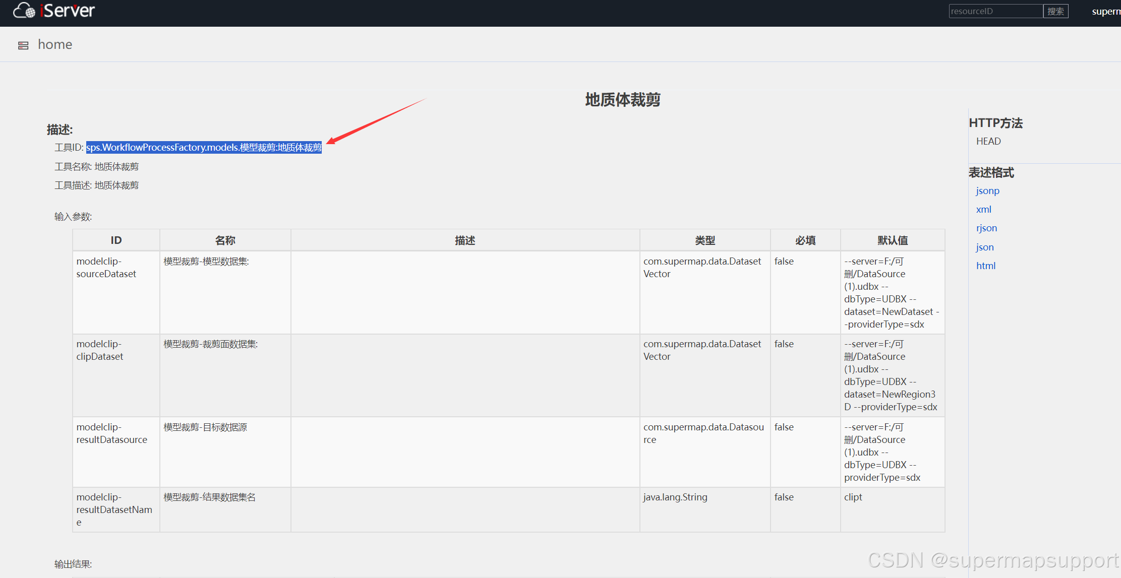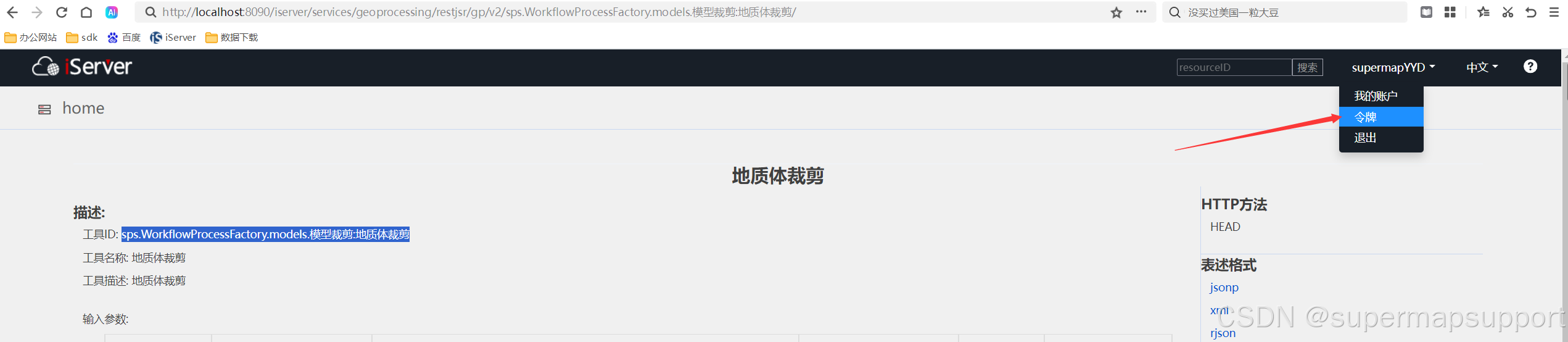 2.4、点击进入 SuperMap iServer 处理自动化服务,找到 工具列表-模型工具-模型裁剪-地质体裁剪工具