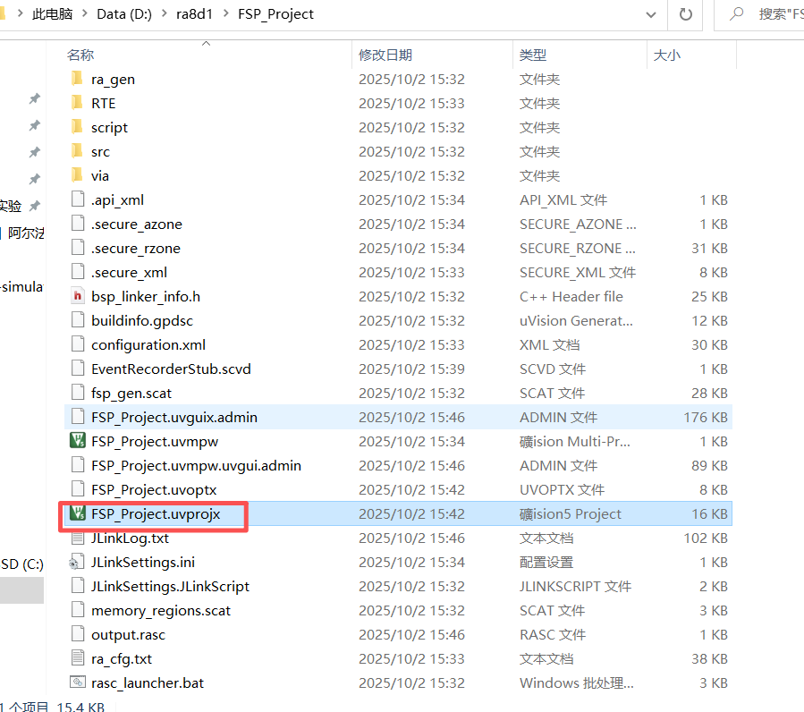 RASC搭建好的项目,进去第一级文件夹会直接看到可以被keil打开的FSP_Project.uvprojx。