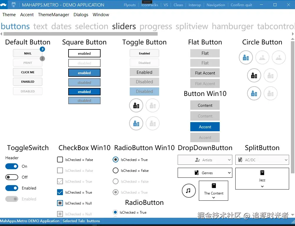 MahApps.Metro 是一个开源、免费、Metro风格的 WPF UI 控件库,提供了现代化、平滑和美观的控件和样式,帮助开发人员轻松创建具有现代感的 Windows 桌面应用程序。