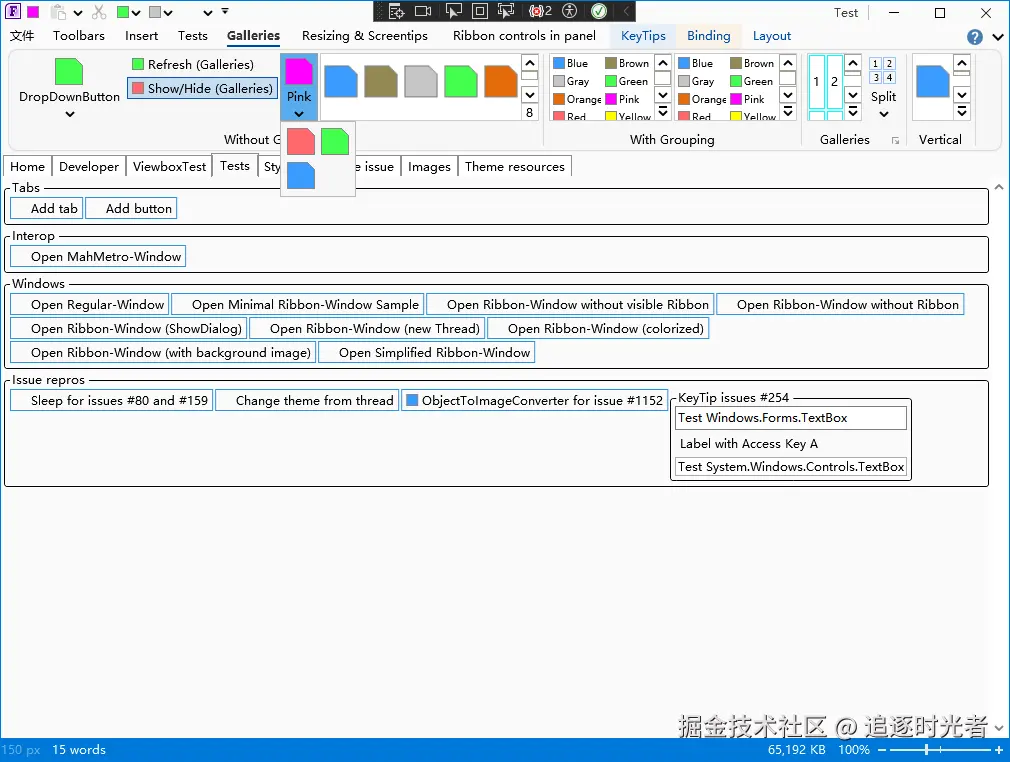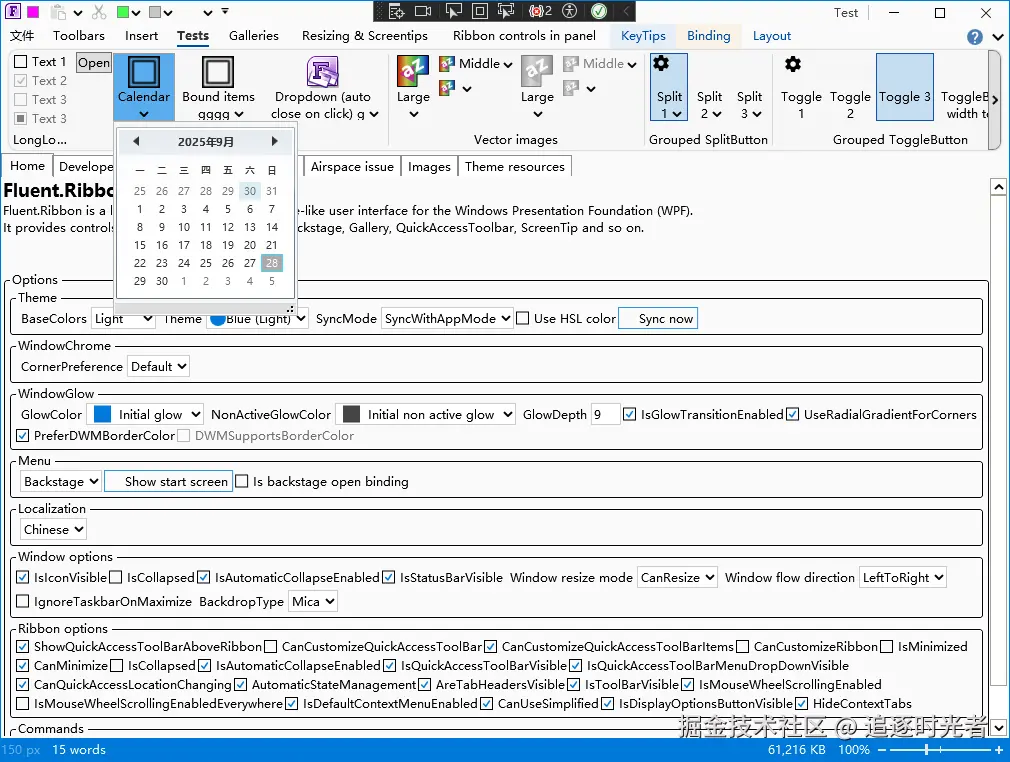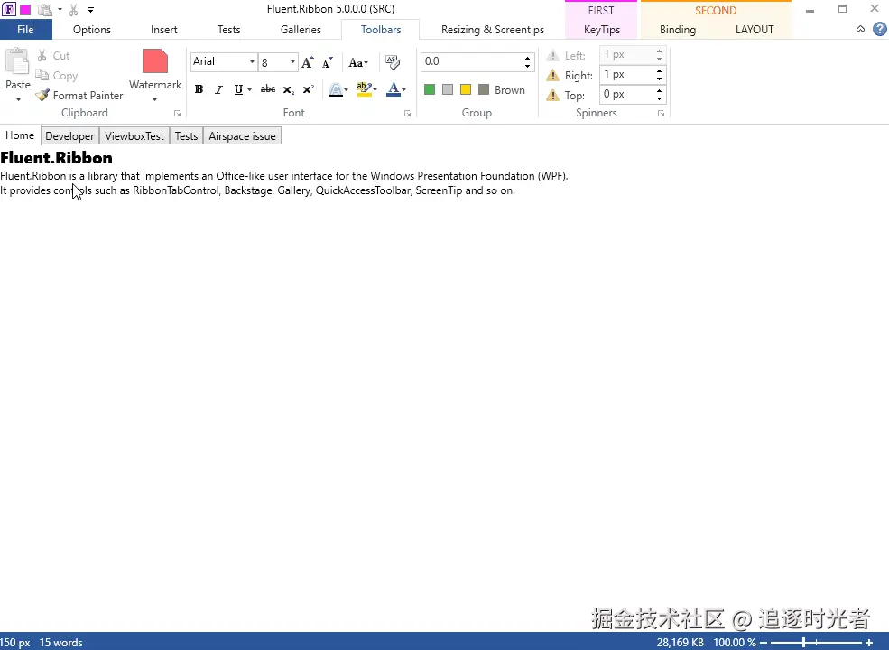 Fluent.Ribbon 一个为 Windows Presentation Foundation(WPF)实现类 Office 开源(MIT license)、免费的用户界面控件库,提供了诸如 RibbonTabControl(功能区选项卡控件)、Backstage(后台视图)、Gallery(画廊控件)、QuickAccessToolbar(快速访问工具栏)、ScreenTip(屏幕提示)等控件。