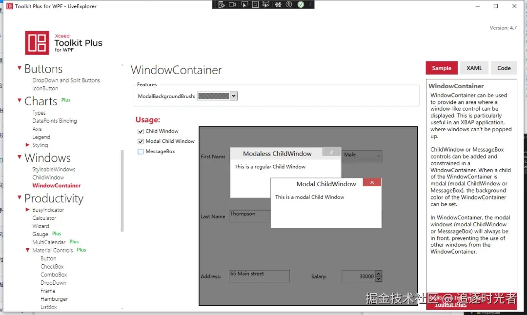 Extended.Wpf.Toolkit是一款开源、经典、易于使用的 WPF 控件、组件和实用工具集合,专为打造新一代 Windows 应用程序而设计。它能帮助开发者构建经典且外观专业的 WPF 应用程序,对于想要自己编写 WPF UI 界面的同学可以参考借鉴学习。