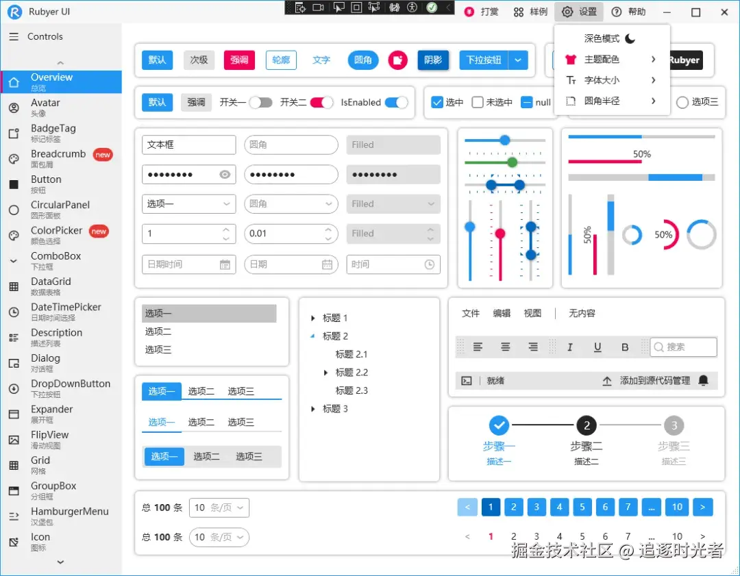 Rubyer WPF 是一款开源免费(MIT License)、通用的 WPF 主题控件包。