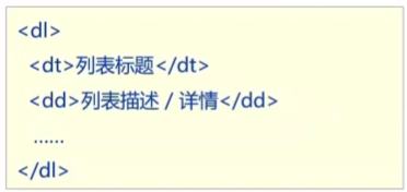 标签:dl嵌套dt和dd,dl是定义列表,dt是定义列表的标题,dd是定义列表的描述/详情。