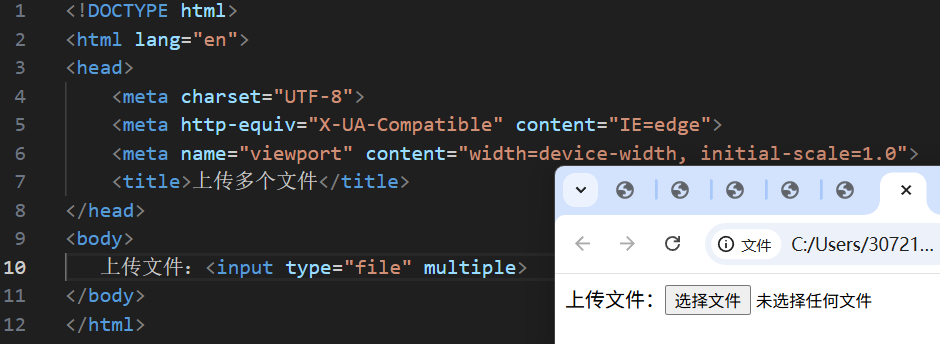 ,添加multiple属性可以实现文件多选功能。