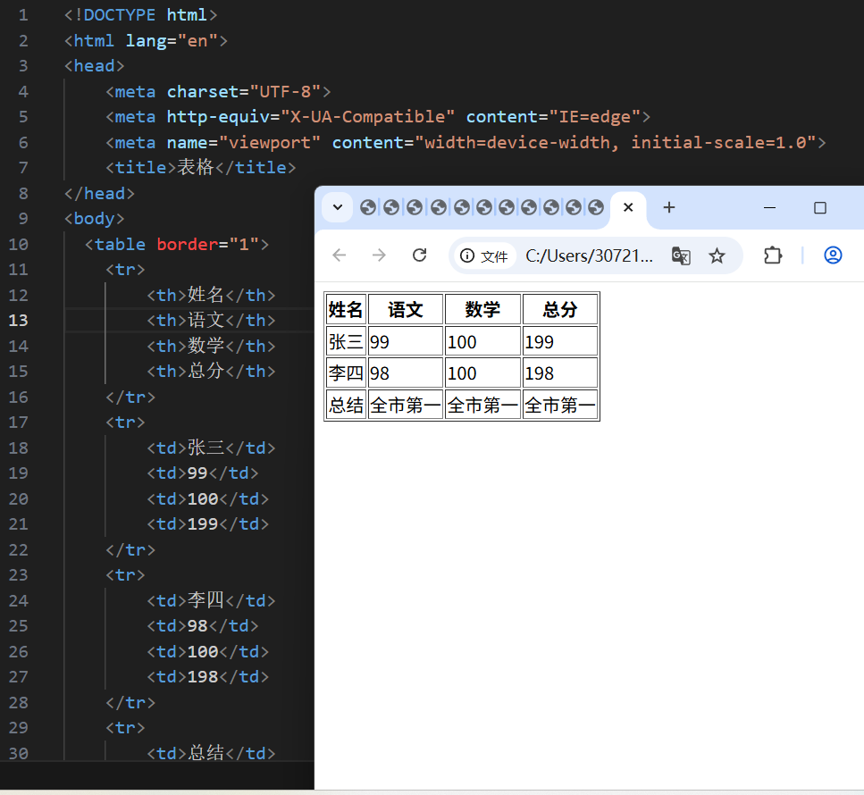 作用:用表格结构标签把内容划分区域,让装格结构更清晰,语义更清晰。