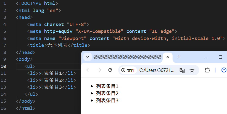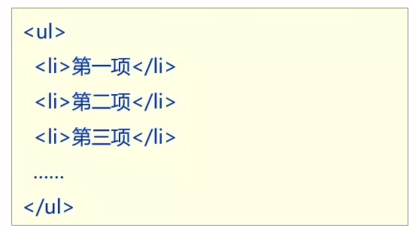 标签:ul嵌套li,ul是无序列表,li是列表条目。