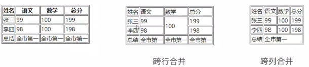 保留最左最上的单元格,添加属性(取值是数字,表示需要合并的单元格数量)