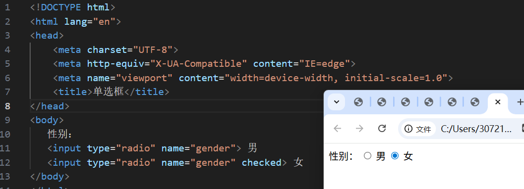 <label><input type="radio">女</label>