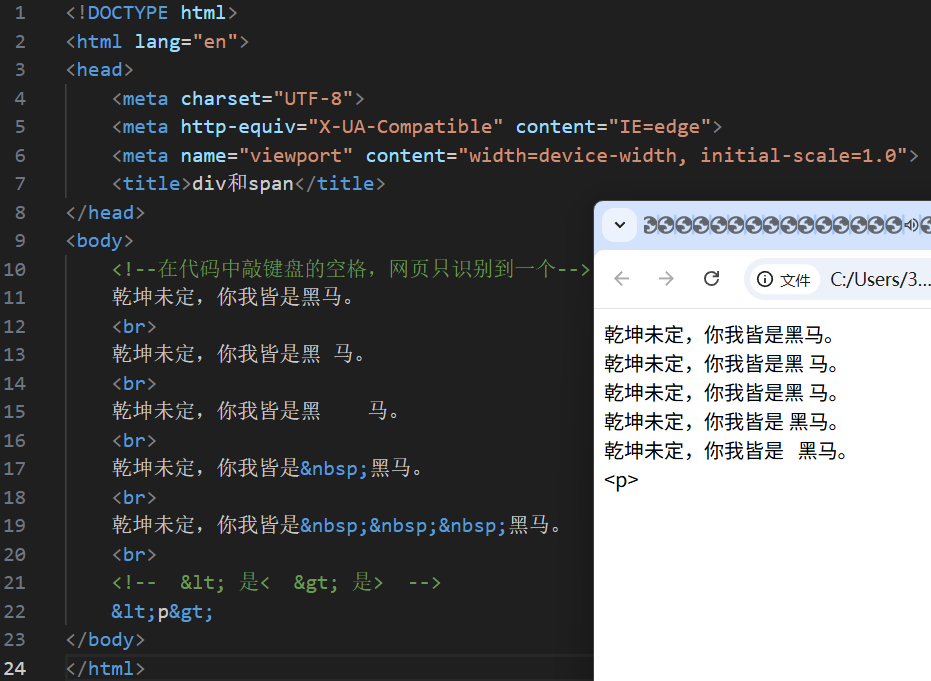 作用:在网页中显示预留字符