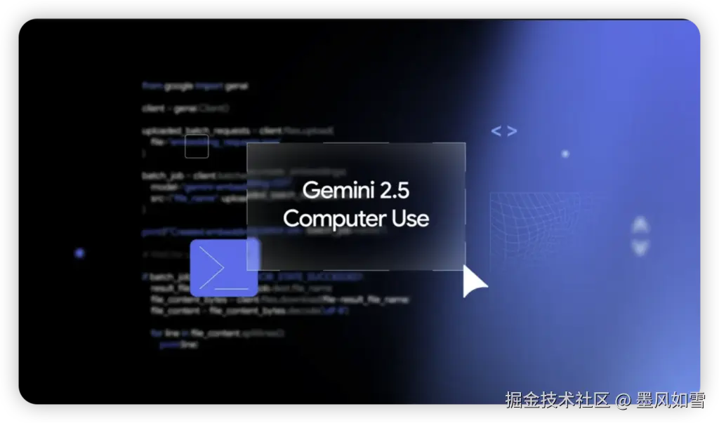 这并非遥远的科幻场景。就在最近,谷歌扔下了一颗重磅炸弹:Gemini 2.5 Computer Use模型正式登场。这不仅仅是一个新模型,更是谷歌向"计算机使用智能体"(CUA)这个未来战场吹响的号角,预示着AI将从"能说会道"迈向"能看会做"的新阶段。