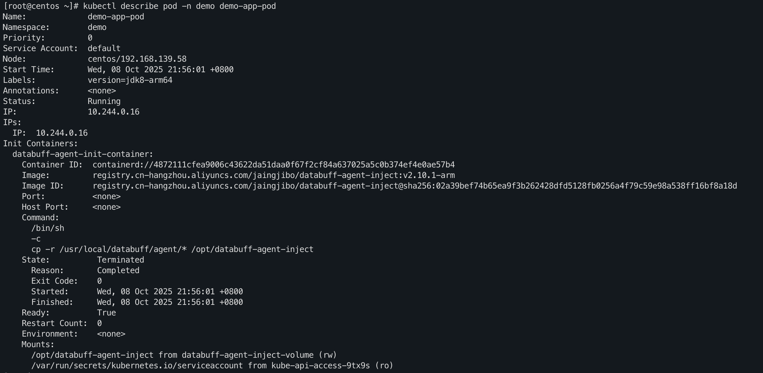 bash# 为目标命名空间添加注入标签 kubectl label namespace demo databuff-agent-webhook=enabled